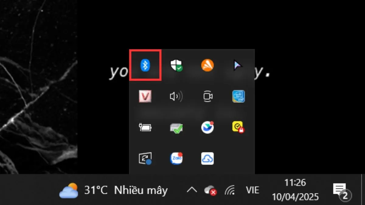Click vào biểu tượng Trung tâm Hành động nằm ở góc phải thanh taskbar (thường là biểu tượng hình chữ nhật có các gạch ngang bên trong). Đây là cách bật/tắt Bluetooth nhanh không cần qua Settings.