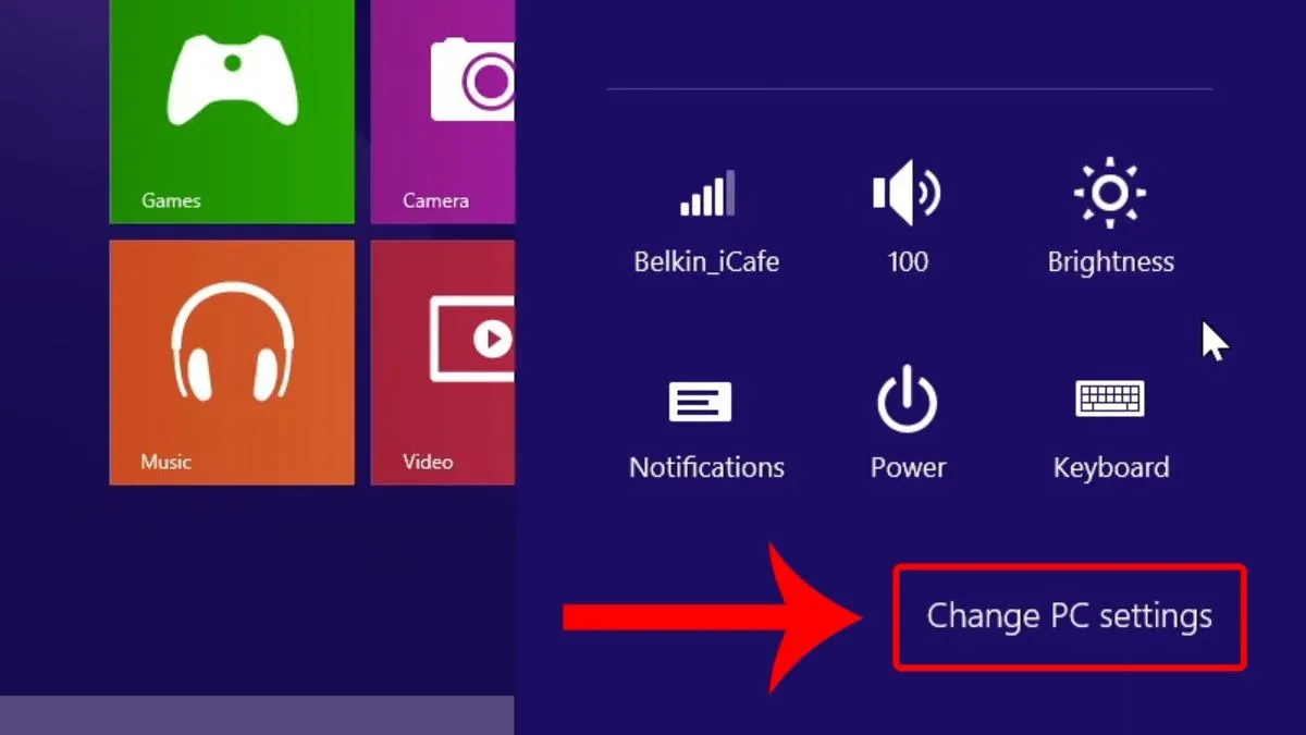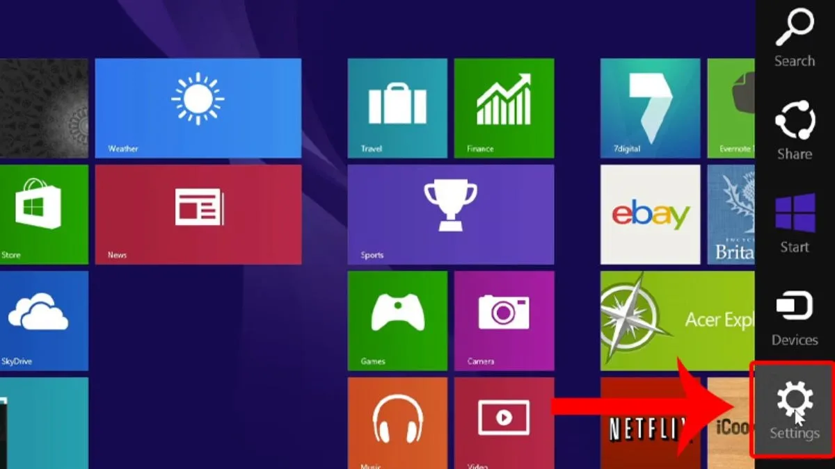 Mặc dù Windows 8 và 8.1 có giao diện khác biệt đáng kể, việc bật Bluetooth vẫn được thực hiện thông qua PC settings. Bạn cần truy cập vào Charm bar để bắt đầu quá trình này.