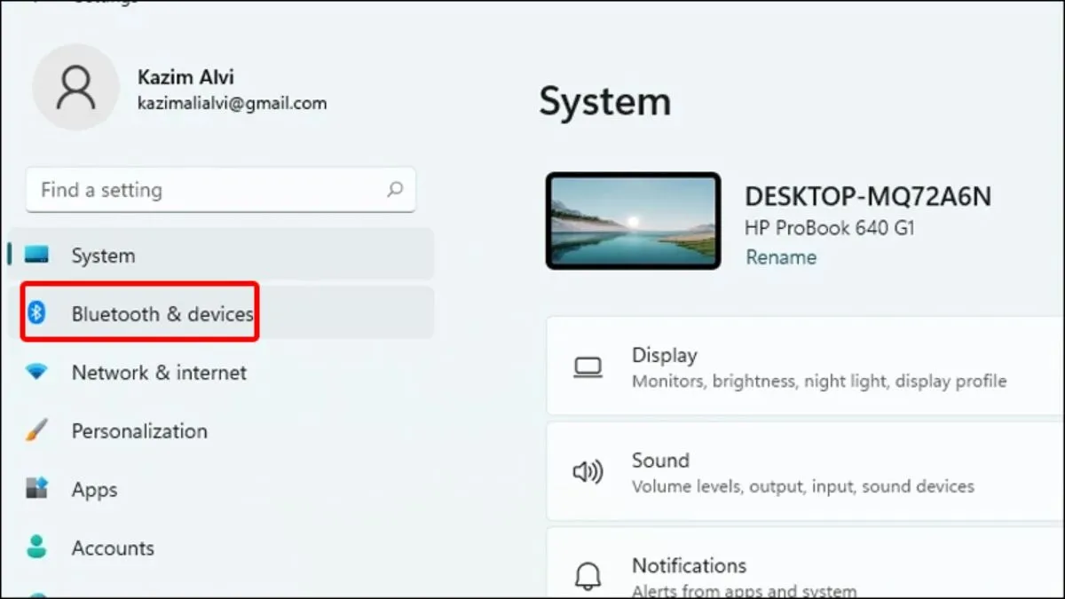 Chọn Bluetooth & devices trong cài đặt laptop Dell Win 11Chọn Bluetooth & devices trong cài đặt laptop Dell Win 11