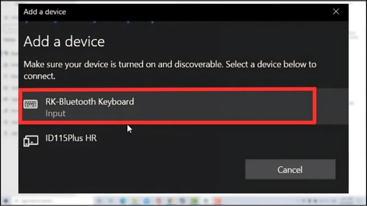Trên laptop, bạn vào phần tìm kiếm thiết bị Bluetooth, tìm tên chuột/bàn phím xuất hiện trong danh sách. Sau đó, bạn click vào tên đó và chọn nút Connect hoặc Pair.