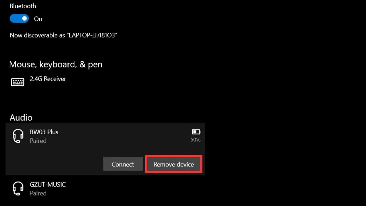 Nếu lỗi chỉ xảy ra với một thiết bị cụ thể, hãy thử xóa kết nối cũ và ghép nối lại. Trong cài đặt Bluetooth, chọn thiết bị gặp sự cố và chọn Remove device (hoặc Forget).