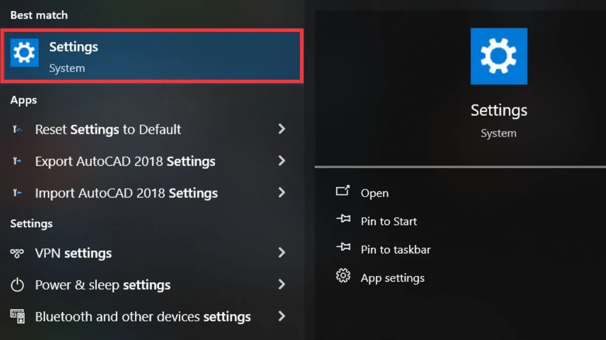 Trong Menu Start, bạn hãy gõ từ khóa “Settings” hoặc nhấn tổ hợp phím Windows + I. Sau đó, bạn bấm chọn biểu tượng Settings để mở cửa sổ cài đặt hệ thống.