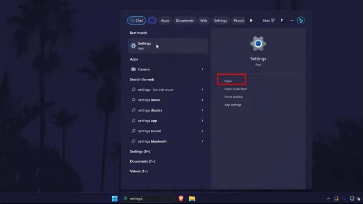 Truy cập Settings thông qua ô tìm kiếmTruy cập Settings thông qua ô tìm kiếm