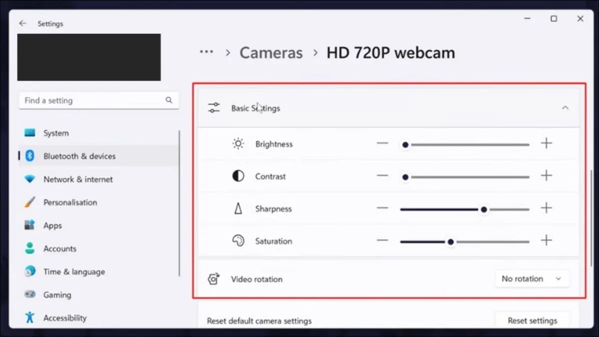 Windows 11 cho phép người dùng điều chỉnh một số thông số kỹ thuật cơ bản của camera thông qua giao diện Settings. Những điều chỉnh này có thể cải thiện đáng kể chất lượng video trong các điều kiện ánh sáng khác nhau.