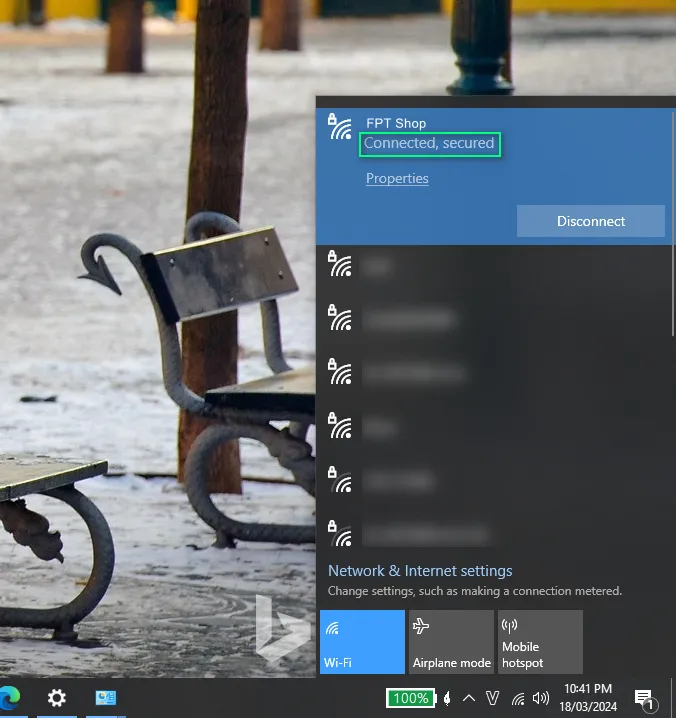 Giao diện cài đặt mạng Wi-Fi trong ứng dụng Settings của Windows