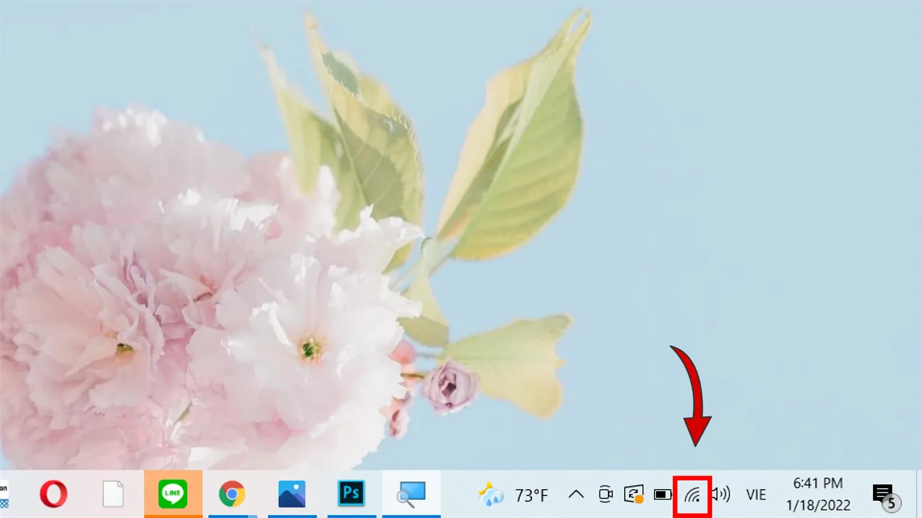 Biểu tượng WiFi trên thanh Taskbar của Windows 10/11 để xem danh sách mạng khả dụng