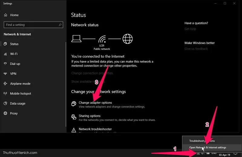 Windows cung cấp công cụ Network Troubleshooter rất hữu ích. Nhấp chuột phải vào biểu tượng mạng và chọn “Troubleshoot problems”. Công cụ này sẽ tự động kiểm tra các thành phần mạng và cố gắng tự động sửa chữa.