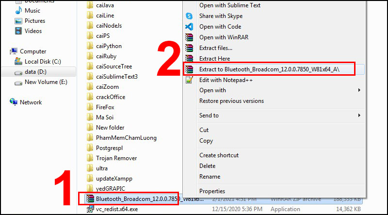 Thao tác giải nén tệp driver Bluetooth vừa tải về bằng phần mềm nénThao tác giải nén tệp driver Bluetooth vừa tải về bằng phần mềm nén