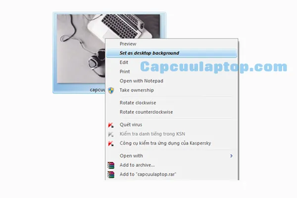 Bước tiếp theo là định vị file ảnh trong File Explorer. Sau đó, bạn chỉ cần bấm chuột phải (right-click) vào file hình ảnh đó. Trong menu ngữ cảnh xuất hiện, bạn chọn tùy chọn Set as desktop Background. Lập tức, Windows sẽ thay đổi hình nền desktop bằng hình ảnh bạn vừa chọn.