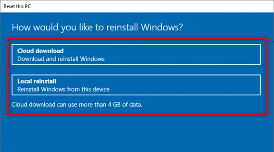 Lựa chọn phương thức Cloud download hoặc Local reinstall - Xác nhận và Reset: Kiểm tra lại các thiết lập bổ sung. Nhấn Next rồi sau đó Reset để bắt đầu quá trình.