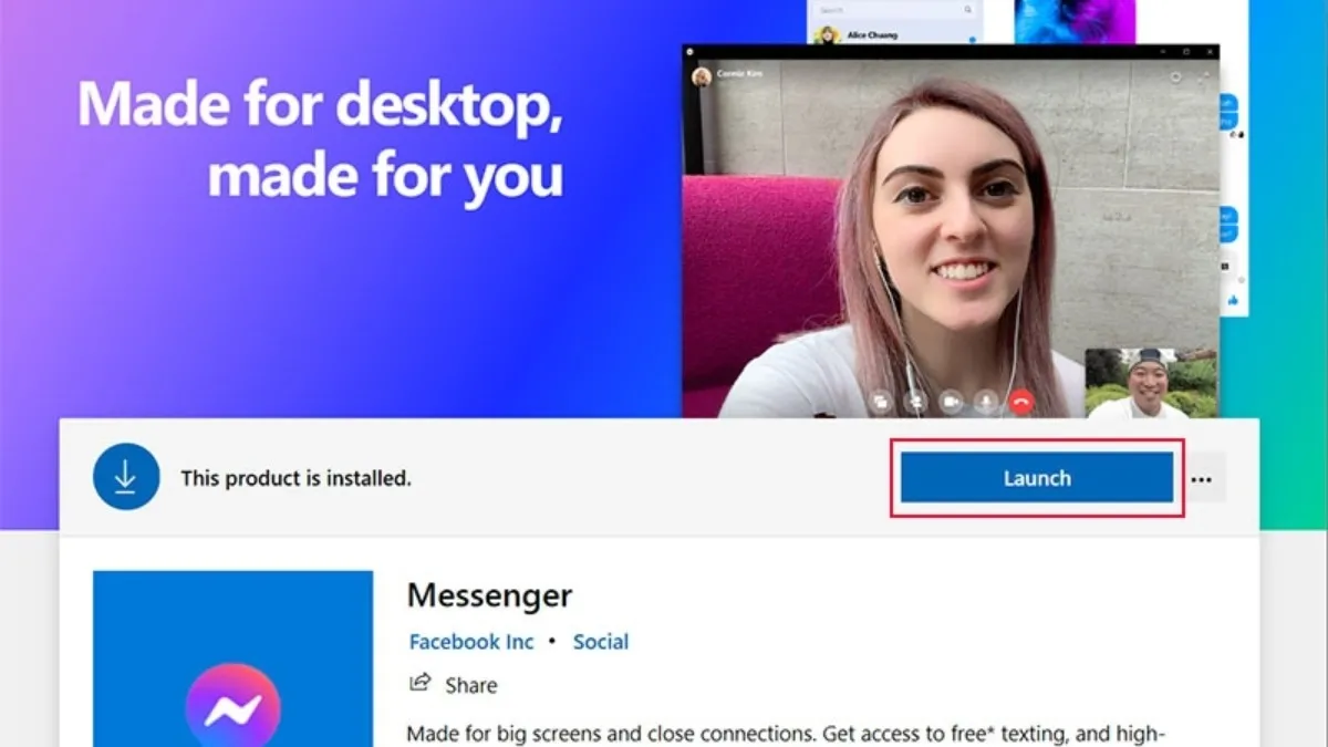 Sau khi quá trình cài đặt hoàn tất, nút “Get” sẽ chuyển thành “Launch” hoặc “Mở”. Nhấn vào nút “Launch” này để mở ứng dụng Messenger lần đầu tiên trên laptop của bạn. Lúc này, bạn chỉ cần đăng nhập bằng tài khoản Facebook để bắt đầu trò chuyện.