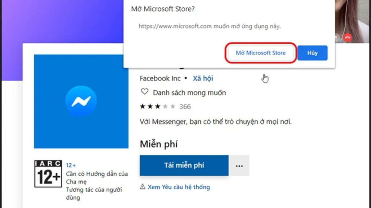 Màn hình xác nhận mở Microsoft Store để tiếp tục cách cài messenger trên laptopMàn hình xác nhận mở Microsoft Store để tiếp tục cách cài messenger trên laptop
