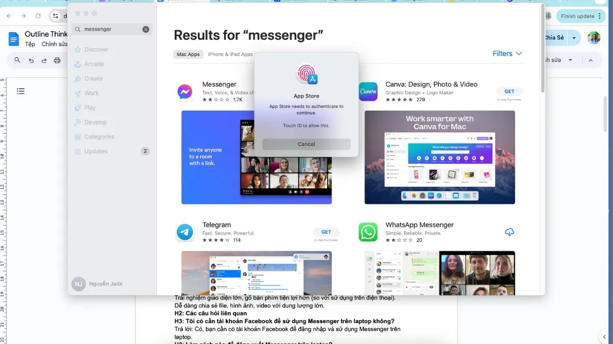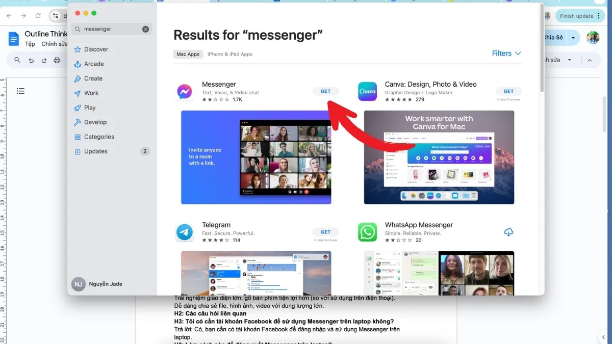 Tìm kiếm và chọn nút "Get" trên App Store để cài Messenger trên laptop macOSTìm kiếm và chọn nút "Get" trên App Store để cài Messenger trên laptop macOS