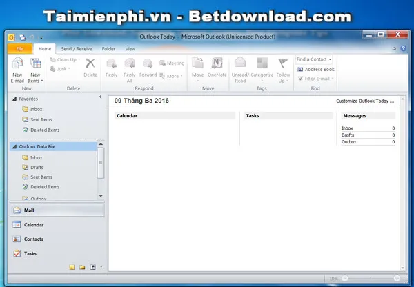 Giao diện cuối cùng của phần mềm Outlook sau khi cài đặt hoàn tất, sẵn sàng để sử dụng