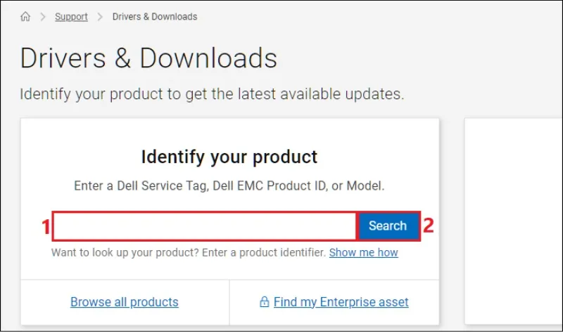 - Nhập Service Tag: Gõ Service Tag đã tìm được vào ô tìm kiếm để truy cập trang hỗ trợ sản phẩm riêng biệt cho thiết bị của bạn.