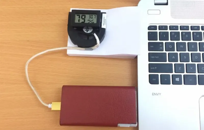 Việc theo dõi nhiệt độ môi trường xung quanh quạt là cần thiết để đánh giá hiệu suất. Sử dụng một đồng hồ đo nhiệt độ điện tử nhỏ (thermometer module) gắn vào lồng quạt.