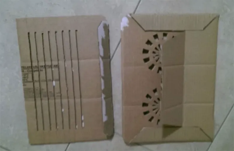 Đế tản nhiệt tự chế từ vật liệu bìa carton cứng cáp với khả năng điều chỉnh độ cao và góc nghiêngMô hình đế tản nhiệt DIY cơ bản, minh họa tính linh hoạt trong thiết kế để tối ưu công thái học.