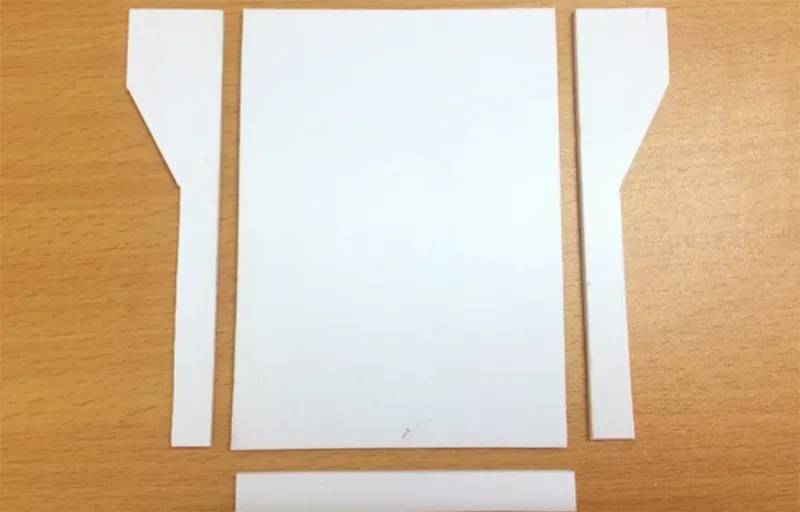 Tấm bìa Fomex được cắt sẵn các chi tiết để lắp ráp lồng hút gió quạt tản nhiệt cho laptopCác bước cắt vật liệu chế tạo lồng hút gió, đảm bảo kích thước chính xác theo khe tản nhiệt laptop.