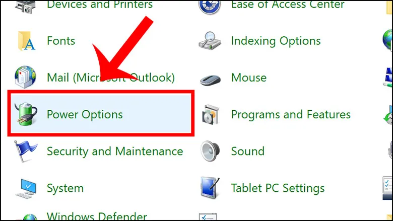 Windows + R, gõcontrolrồi nhấn Enter. - Truy cập Tùy chọn Nguồn: Đảm bảo