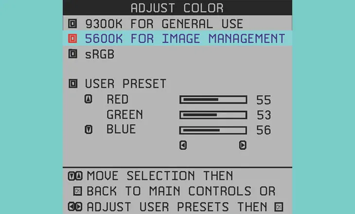 Nhiệt độ màu màn hình, khuyến nghị 6500K