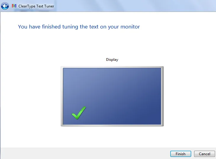 Sau khi ấn Finish hoàn thành việc điều chỉnh màu sắc màn hình laptop. Cửa sổ ClearType Text Tuner hiện lên,