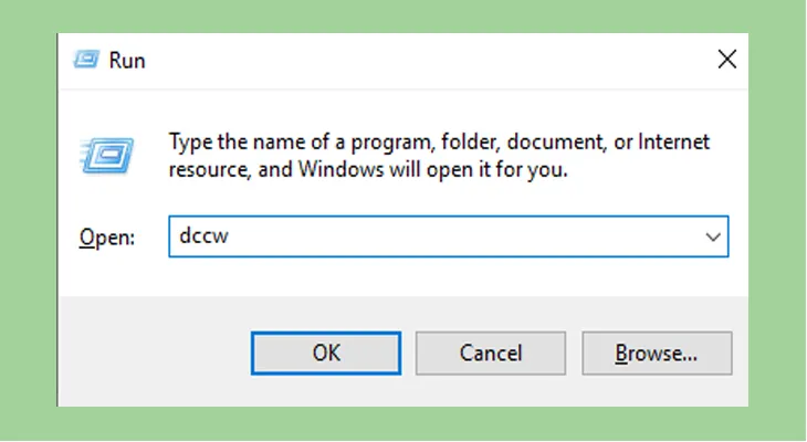Bấm tổ hợp phím Windows+R để mở hộp thoại Run. Nhập từ khóa “dccw” và bấm OK