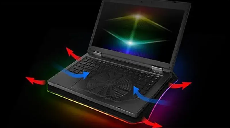 Sử dụng đế tản nhiệt bên ngoài có thể cung cấp thêm luồng không khí làm mát. Đế tản nhiệt không chỉ thổi khí lạnh mà còn giúp nâng laptop lên, tạo không gian để quạt bên trong hút khí dễ dàng hơn.