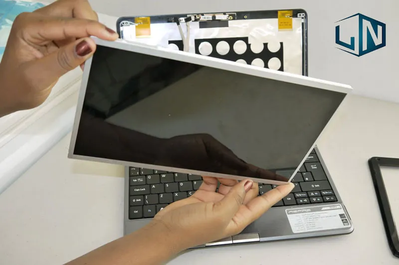 Hình ảnh minh họa quy trình tự chế màn hình riêng tư bằng cách tháo tấm lọc phân cực