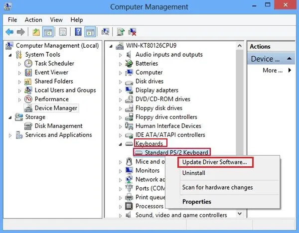 Standard PS/2 Keyboardhoặc tên model cụ thể của laptop). - Chọn Update Driver Software (Cập nhật phần mềm trình điều khiển) và để Windows tự động tìm kiếm phiên bản mới nhất.