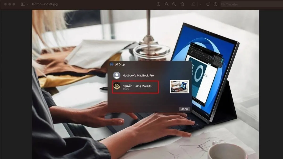 Chọn iPhone của bạn trong danh sách thiết bị AirDrop khả dụngChọn iPhone của bạn trong danh sách thiết bị AirDrop khả dụng