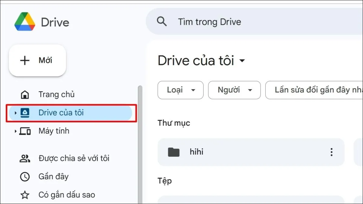 Bạn truy cập Google Drive qua trình duyệt trên laptop. Bạn tải tệp tin lên bằng thao tác đơn giản.