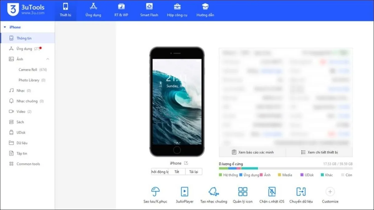Mở 3uToolsMở 3uTools
