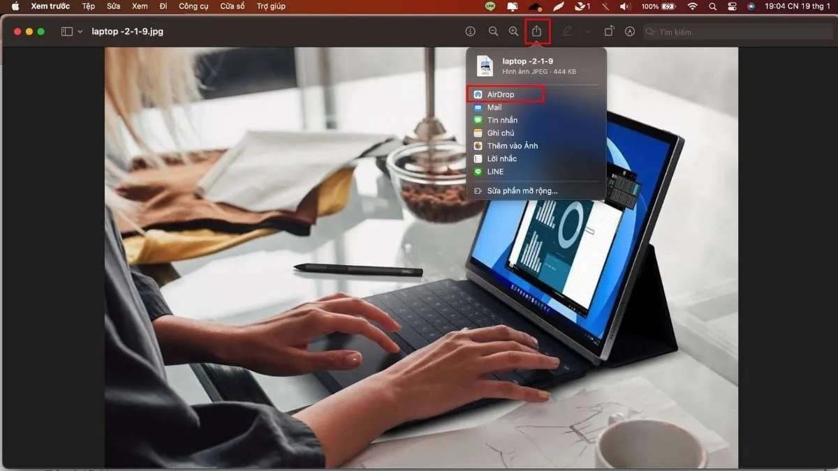 Trên MacBook, bạn nhấp chuột phải vào file cần chuyển. Sau đó, bạn chọn “Share” (Chia sẻ) rồi chọn AirDrop.