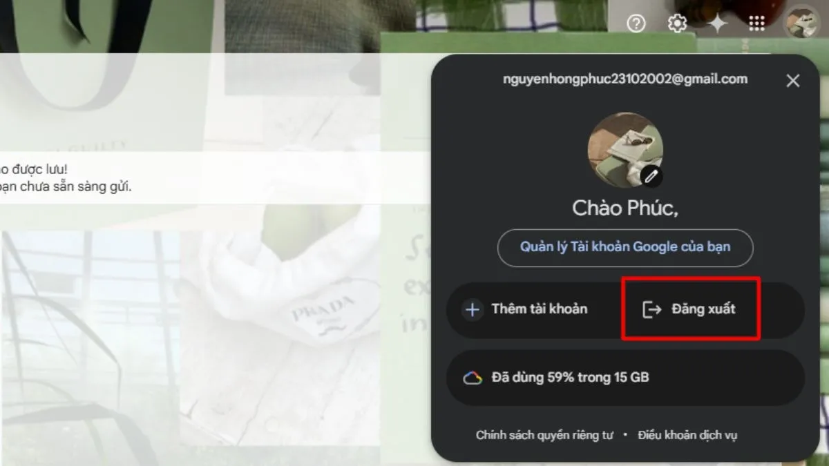 Trong menu vừa mở, bạn sẽ thấy tùy chọn “Đăng xuất” (Sign out). Hãy nhấp vào tùy chọn này. Nếu bạn đang đăng nhập nhiều tài khoản Gmail cùng lúc trên trình duyệt đó, hệ thống có thể cung cấp tùy chọn đăng xuất khỏi từng tài khoản riêng lẻ hoặc đăng xuất khỏi tất cả các tài khoản cùng một lúc.