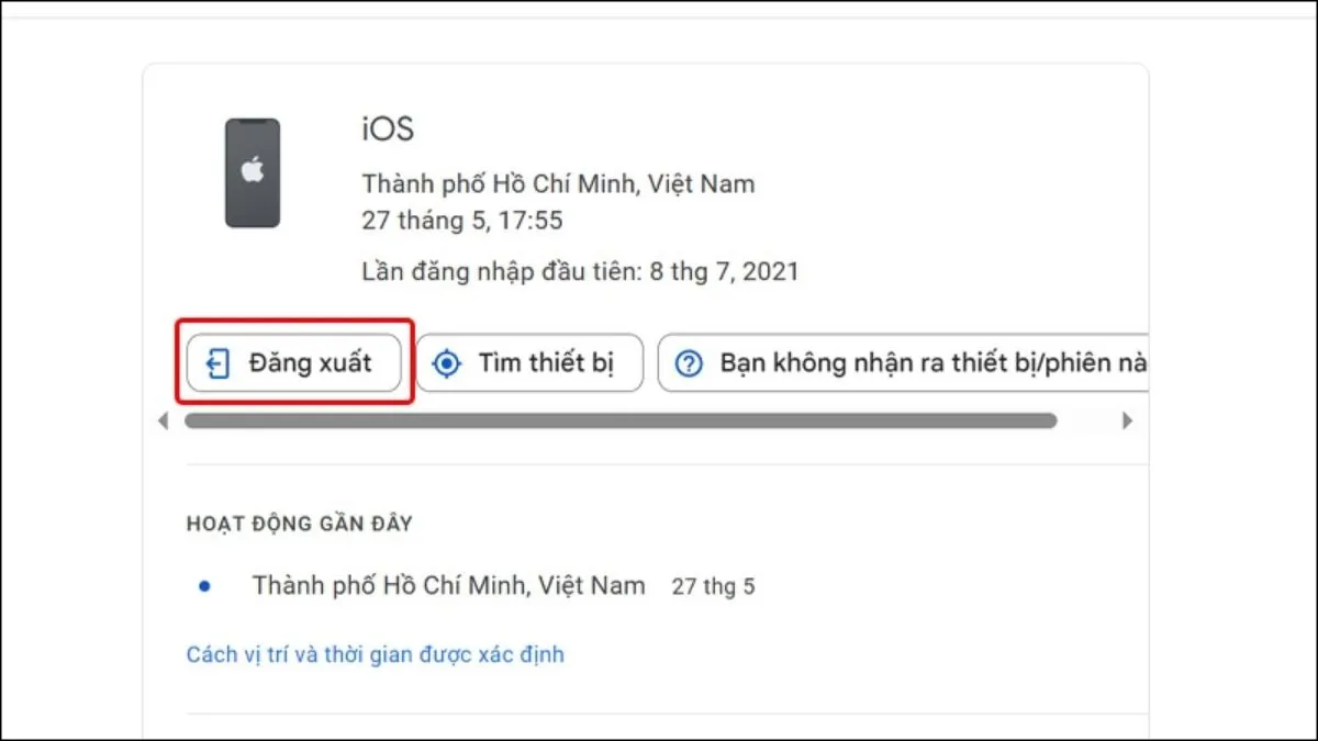 Nhấp vào thiết bị mà bạn nghi ngờ hoặc thiết bị mà bạn đã quên đăng xuất. Hệ thống sẽ hiển thị thông tin chi tiết hơn và các tùy chọn hành động.