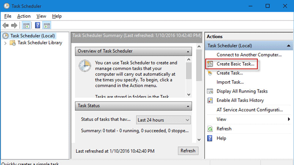 - Chọn Create Basic Task ở khung bên phải.