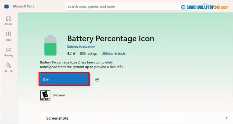 Người dùng bắt đầu bằng cách truy cập Microsoft Store trên thiết bị của mình. Tìm kiếm ứng dụng theo tên chính xác là “Battery Percentage icon” hoặc một biến thể tương tự. Ứng dụng này được đánh giá cao về tính ổn định, dung lượng nhẹ và khả năng tùy biến.