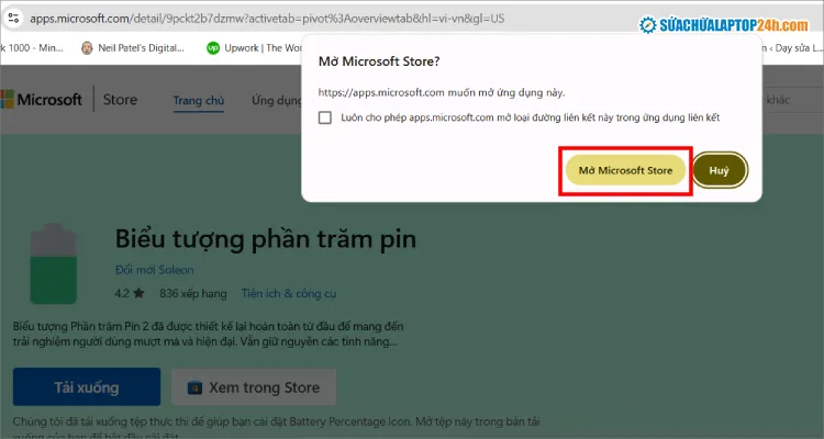 Mở Microsoft Store để tiến hành tải xuống ứng dụng hiển thị pin