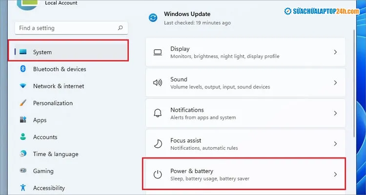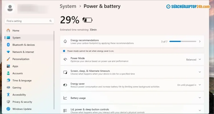 Truy cập System và chọn Power & battery trong cài đặt Windows 11