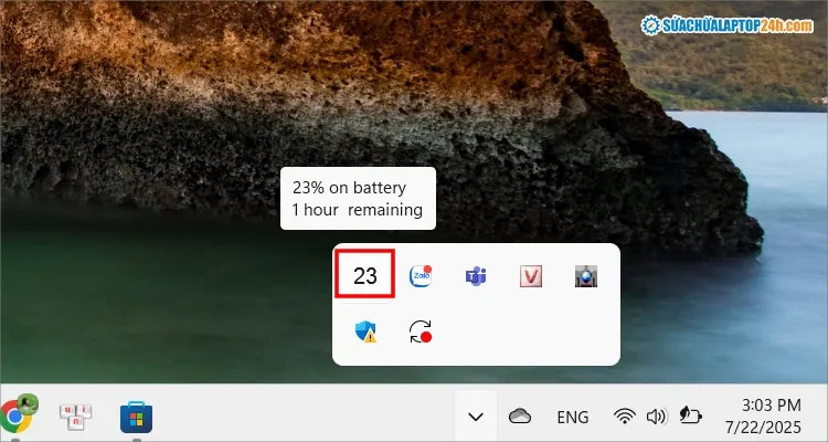 Kết quả hiển thị phần trăm pin (ví dụ 23) trực tiếp trên Taskbar