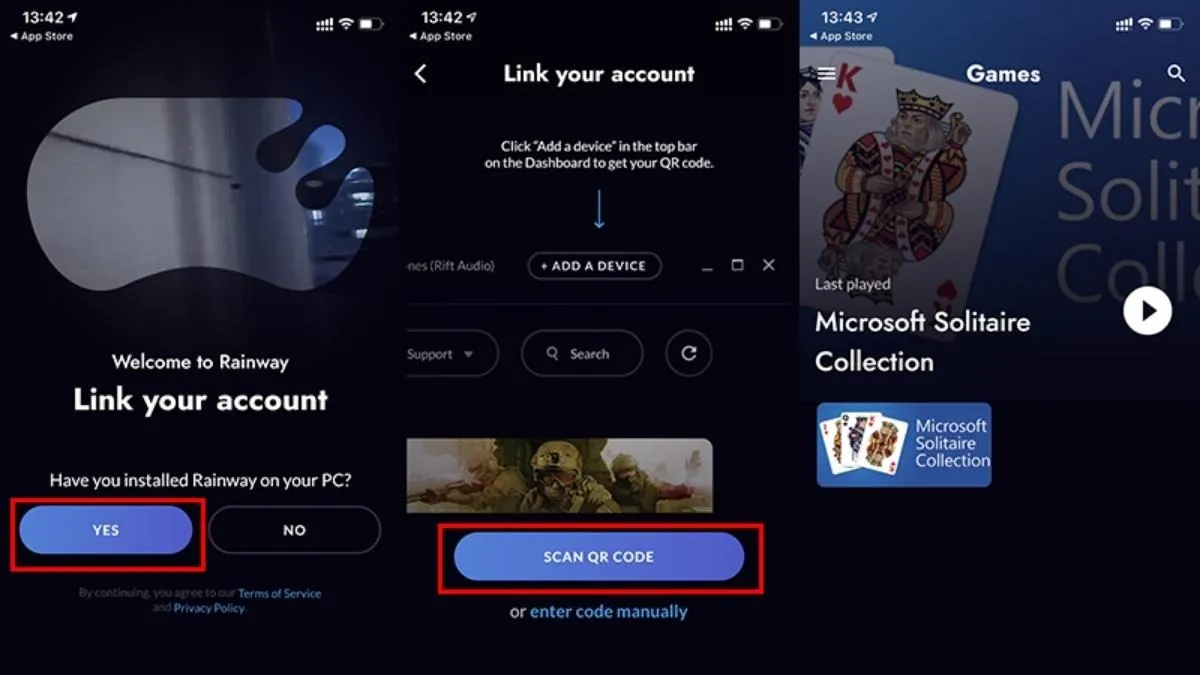 Mở Rainway trên điện thoại → Quét mã QR hiển thị trên PC