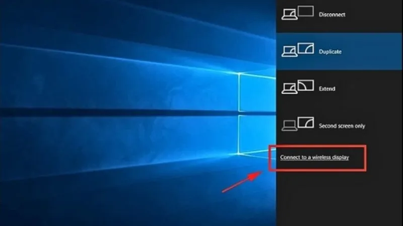 Trên laptop Windows, nhấn tổ hợp phím Windows + K (hoặc Windows + P, sau đó chọn Connect to a wireless display). Thao tác này sẽ mở ra menu Connect ở bên phải màn hình.
