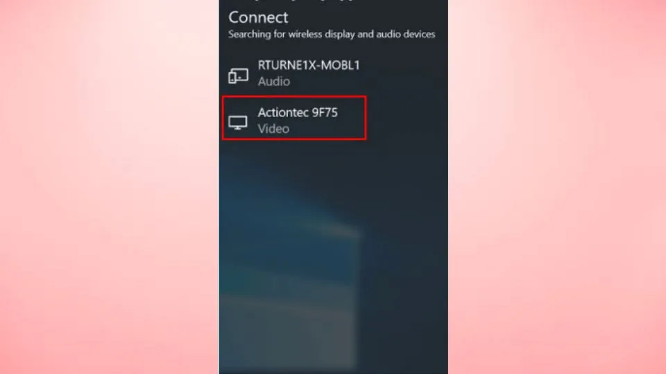 Windows sẽ tự động quét và hiển thị danh sách các thiết bị không dây có sẵn. Chọn tên máy chiếu mini của bạn trong danh sách để bắt đầu quá trình kết nối.
