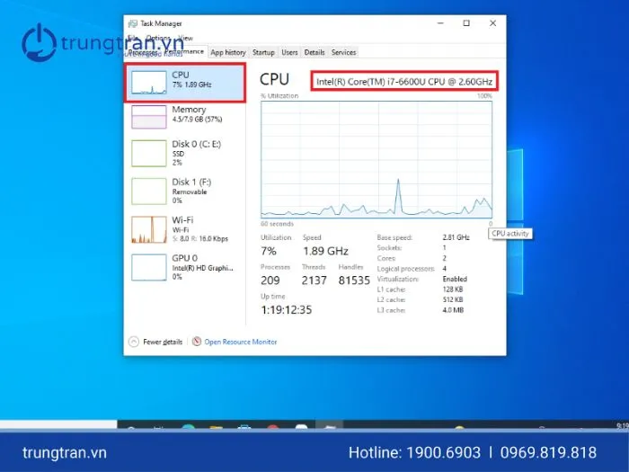Các thông số cần quan tâm bao gồm Tên model và thế hệ (ví dụ: Intel Core i7-13700H), Tốc độ xung nhịp (GHz), Số nhân/Số luồng (Cores/Threads) và Bộ nhớ đệm (Cache). Đối với các tác vụ chuyên nghiệp, CPU có nhiều nhân và luồng (ví dụ: i7, i9 hoặc AMD Ryzen 7, 9) và xung nhịp cao sẽ mang lại hiệu suất vượt trội. Các công cụ kiểm tra chi tiết sẽ giúp xác định liệu CPU có hỗ trợ công nghệ ảo hóa (Virtualization) hay không.
