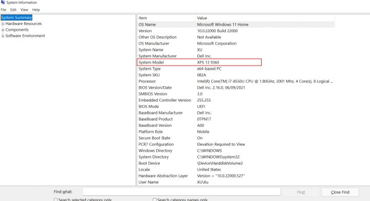 Trong mục “System Summary”, hãy tìm kiếm dòng “System Model”. Giá trị hiển thị tại đây chính là tên dòng máy và model cụ thể của laptop Dell. Các thông tin khác như “BIOS Version/Date” và “System Manufacturer” cũng củng cố thêm tính xác thực của thiết bị. Phương pháp này đặc biệt hữu ích khi cần tra cứu nhanh các thông số kỹ thuật.