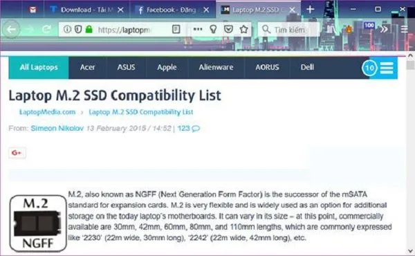 cách kiểm tra laptop có hỗ trợ ssd m2 không bằng website tra cứu