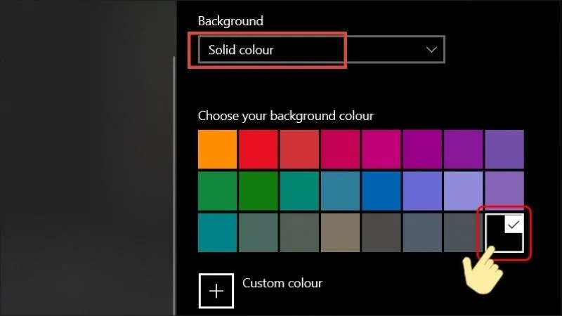 Đầu tiên, nhấn chuột phải vào màn hình chính và chọn Personalize để tùy chỉnh. Tiếp theo, chọn Desktop Background và chuyển sang mục Solid Colors. Lần lượt chọn các màu đơn sắc như đen, trắng, đỏ, xanh lá, và xanh dương. Màn hình đơn sắc sẽ làm nổi bật mọi điểm ảnh bị lỗi.