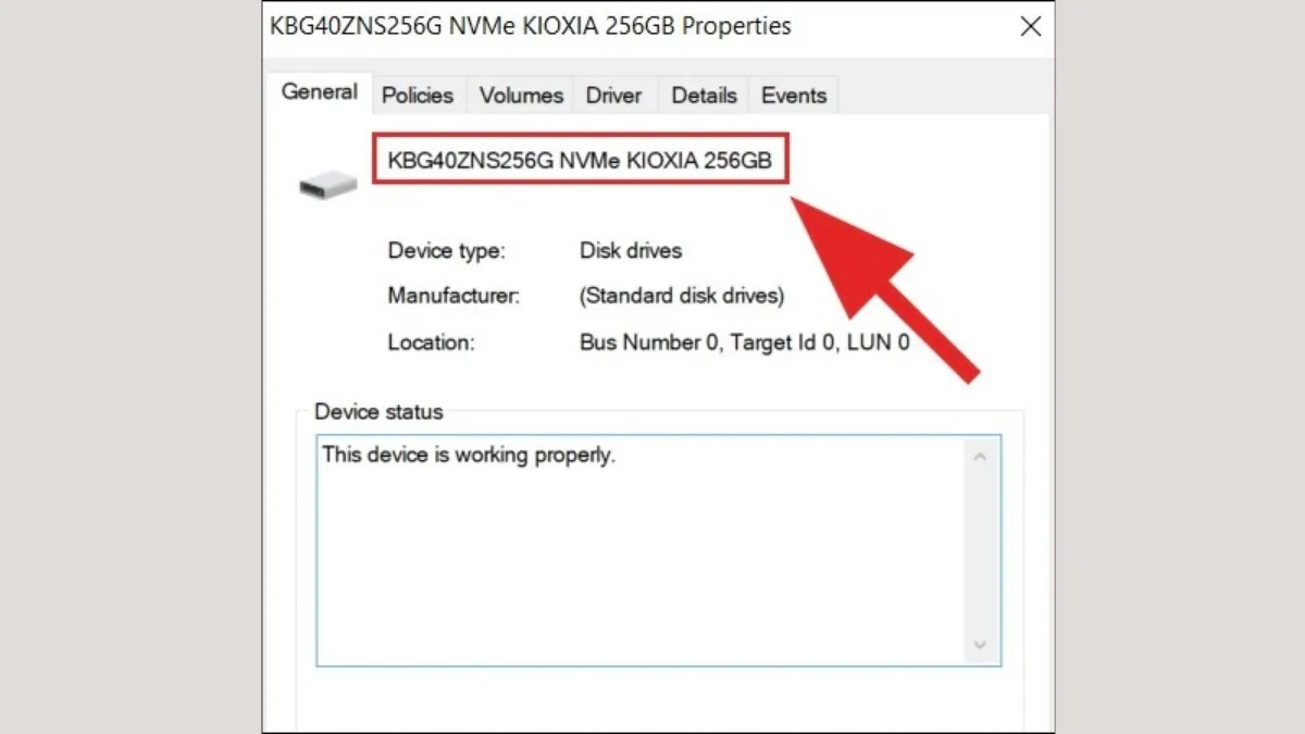 - Sao chép mã số ổ cứng: Trong Disk Management, bạn có thể xem các thuộc tính (Properties) của ổ đĩa. Ghi lại mã số/tên model chính xác.