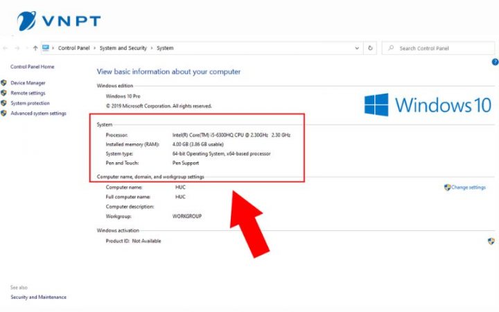 Thông tin về Tên máy tính (Computer Name) và Nhóm làm việc (Workgroup) cũng được hiển thị. Điều này cần thiết cho các tác vụ quản trị mạng trong nội bộ doanh nghiệp, giúp xác định thiết bị trên mạng lưới một cách dễ dàng.