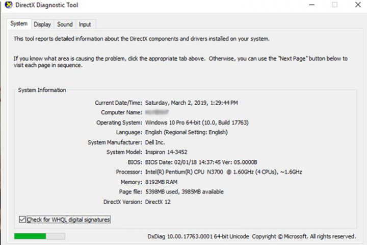 Công cụ Chẩn đoán DirectX (dxdiag)